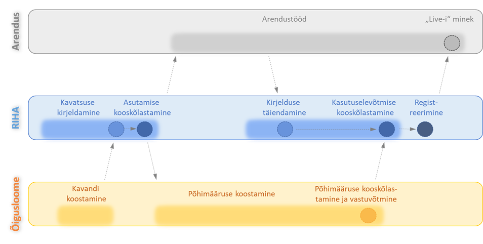 RIHA protsessi seoseid õigusloome ning infosüsteemi arendusprotsessiga kirjeldab järgmine joonis.