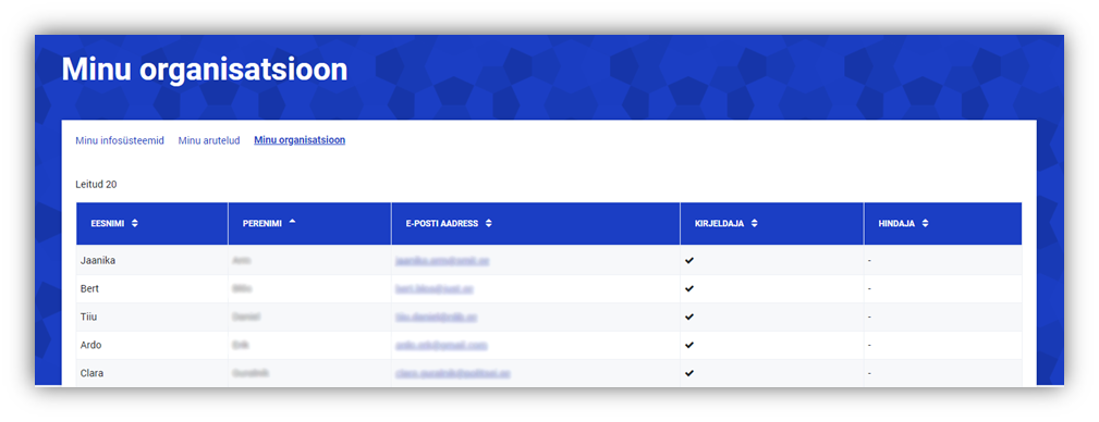 RIHA hindaja näeb nimekirjas ka neid isikuid, kes tema organisatsioonist veel omavad RIHA-s hindaja rolli ning saavad infosüsteemidele hinnanguid lisada.