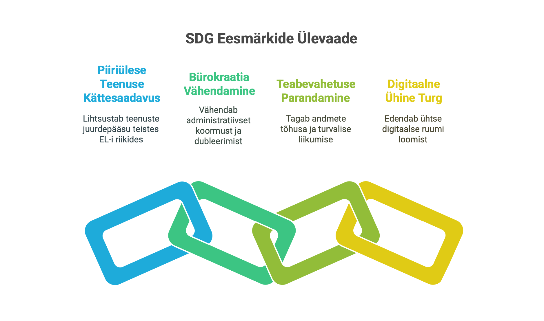 🌐 Toetada digitaalset ühisturgu – SDG aitab kaasa ühtse digitaalse ruumi loomisele, kus teenused on kättesaadavad kogu Euroopas.