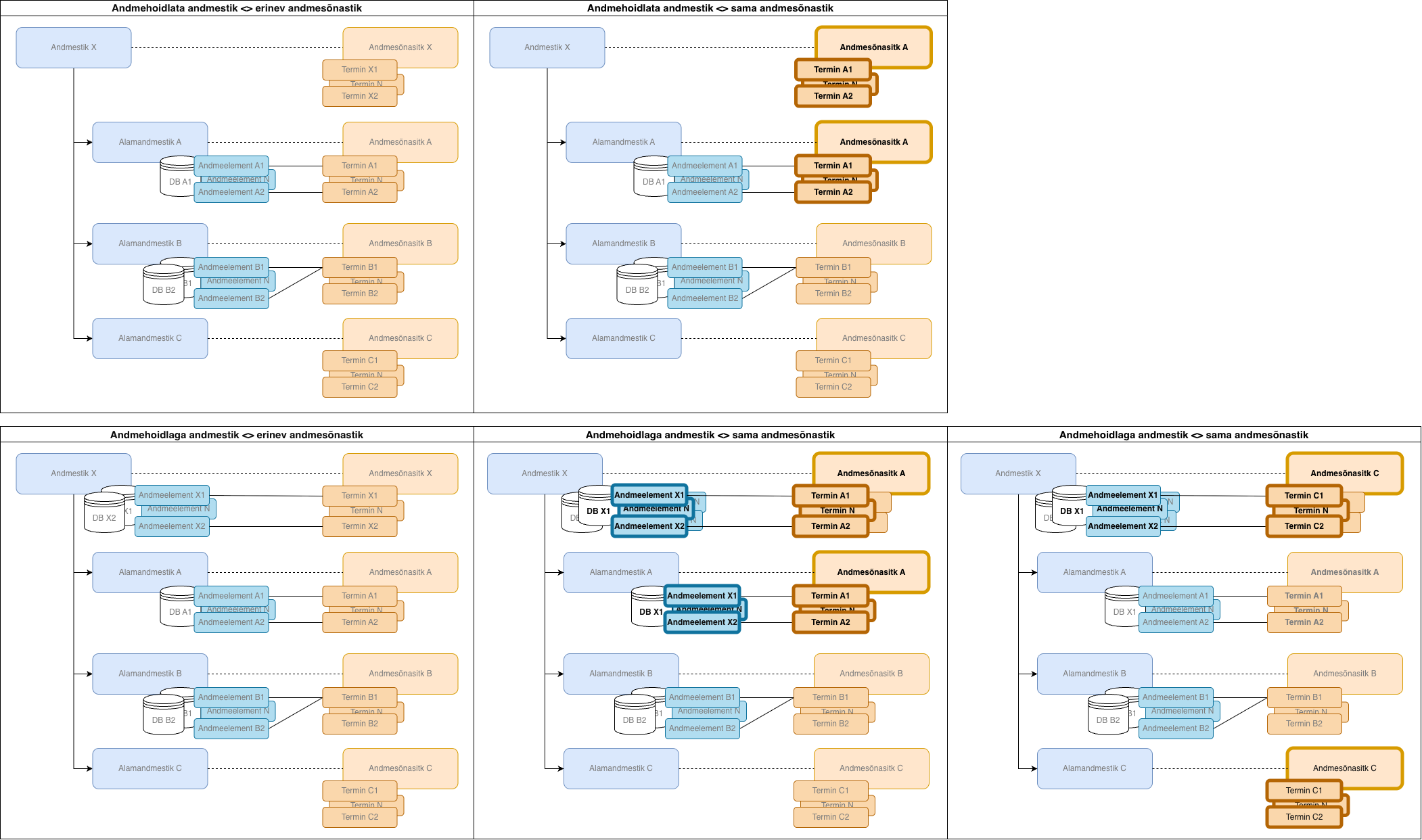 andmestikust erineva andmesõnastikuga alamandmestiku X saatmise protsess