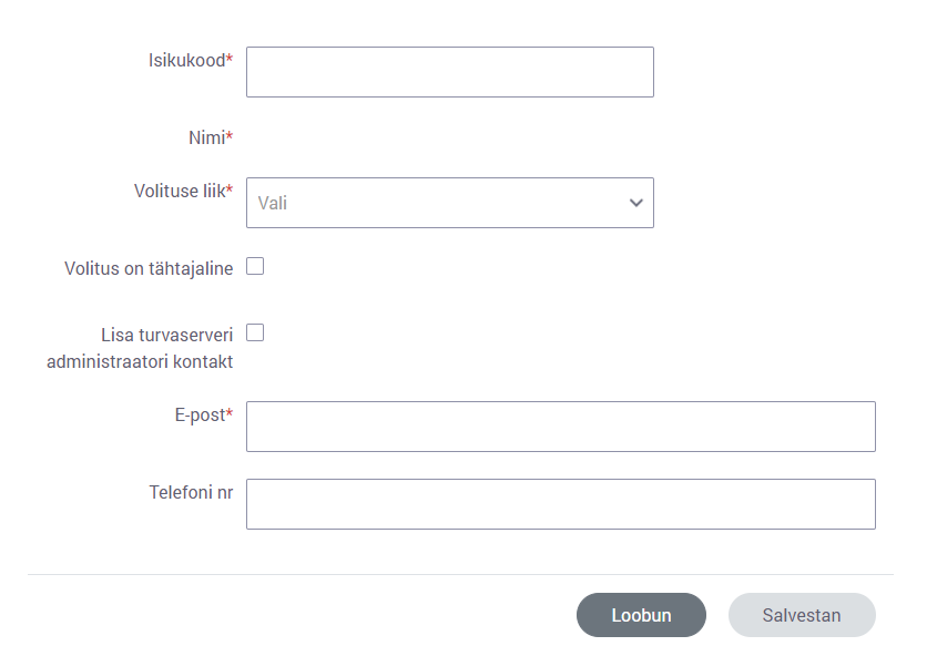 Et volitada uut isikut tuleb vajutada "Lisa uus volitus" nuppu. Selle peale avaneb volitamise vaade: